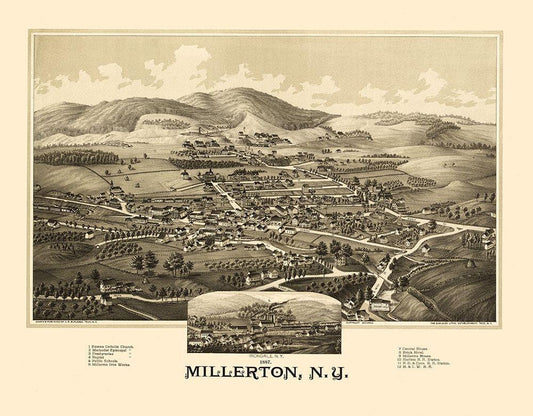 Millerton New York - Burleigh 1887 White Modern Wood Framed Art Print with Double Matting by Burleigh