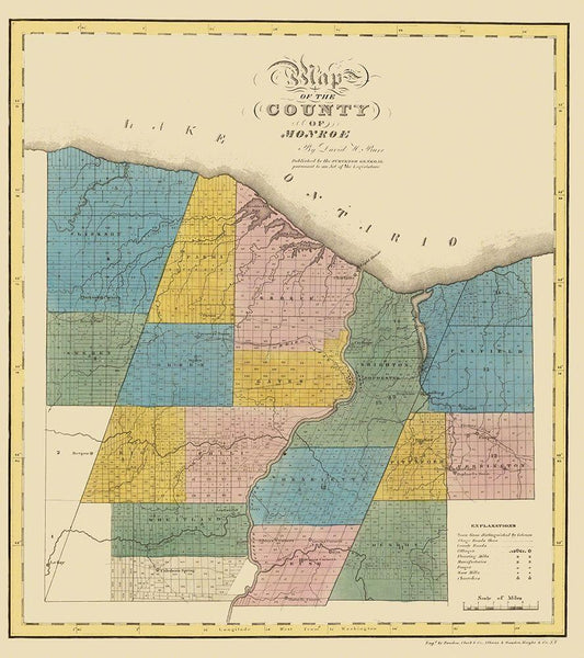Monroe New York - Burr 1829 White Modern Wood Framed Art Print with Double Matting by Burr