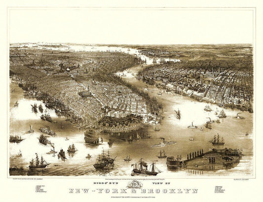 New York Brooklyn New York - Guerber 1851 White Modern Wood Framed Art Print with Double Matting by Guerber