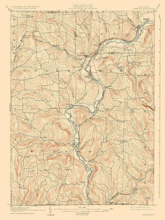 Neneveh New York Quad - USGS 1905 White Modern Wood Framed Art Print with Double Matting by USGS