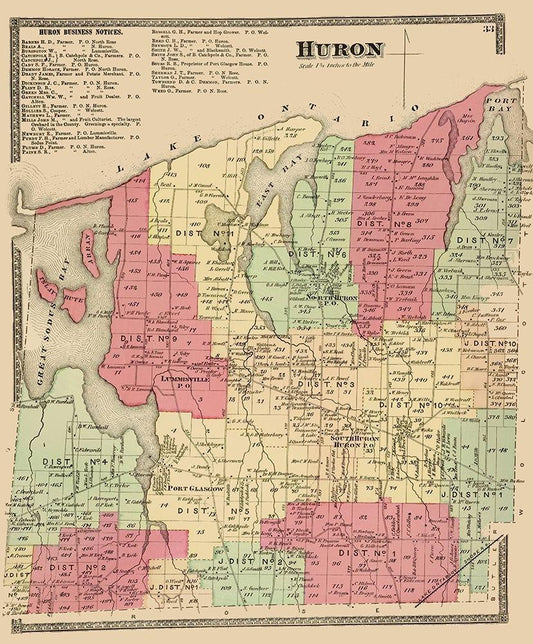 Huron New York Landowner - Beers 1874 White Modern Wood Framed Art Print with Double Matting by Beers