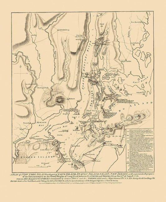 Battle of Long Island - Faden 1776 White Modern Wood Framed Art Print with Double Matting by Faden