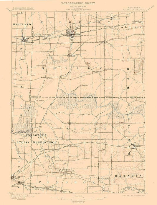Medina New York Quad - USGS 1897 White Modern Wood Framed Art Print with Double Matting by USGS
