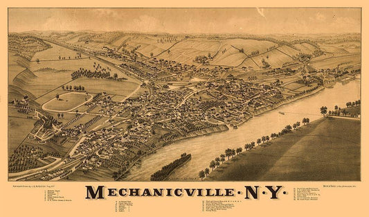Mechanicville New York - Burleigh 1880 White Modern Wood Framed Art Print with Double Matting by Burleigh