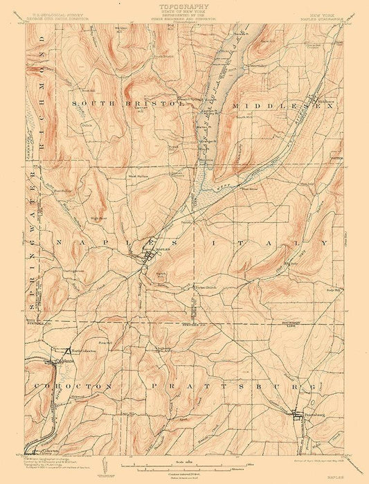 Naples New York Quad - USGS 1903 White Modern Wood Framed Art Print with Double Matting by USGS