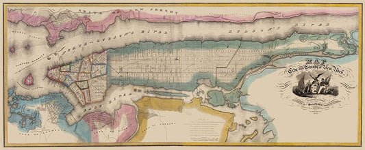 New York New York - Dripps 1852 White Modern Wood Framed Art Print with Double Matting by Dripps