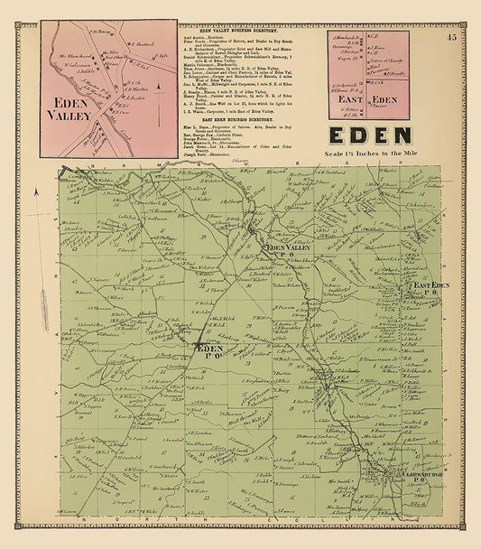 Eden New York Landowner - Stone 1866 White Modern Wood Framed Art Print with Double Matting by Stone