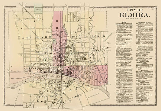 Elmira New York - Beers 1869 White Modern Wood Framed Art Print with Double Matting by Beers