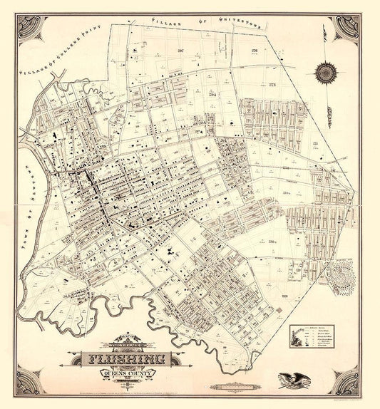Flushing New York - Roullier 1894 White Modern Wood Framed Art Print with Double Matting by Roullier