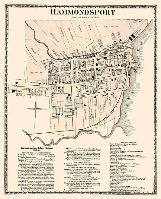 Hammondsport New York Landowner - Beers 1873 White Modern Wood Framed Art Print with Double Matting by Beers
