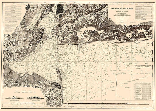 New York Bay and Harbor - USCS 1845 White Modern Wood Framed Art Print with Double Matting by USCS