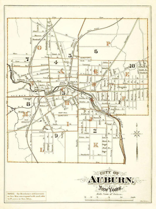 Auburn New York - Mac Cormac 1875 White Modern Wood Framed Art Print with Double Matting by Mac Cormac