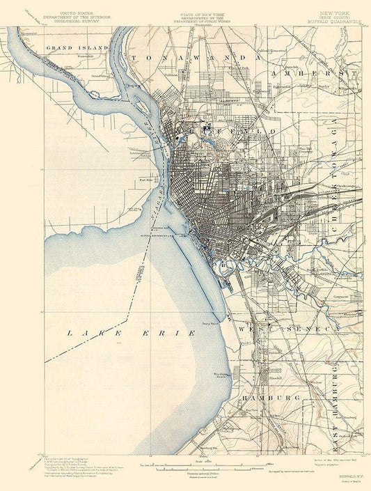 Buffalo New York Quad - USGS 1901 White Modern Wood Framed Art Print with Double Matting by USGS