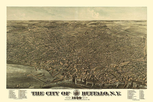 Buffalo New York - Hutchinson 1880 White Modern Wood Framed Art Print with Double Matting by Hutchinson