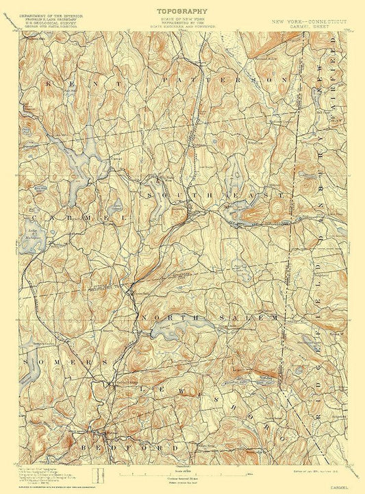 Carmel New York Sheet - USGS 1894 White Modern Wood Framed Art Print with Double Matting by USGS
