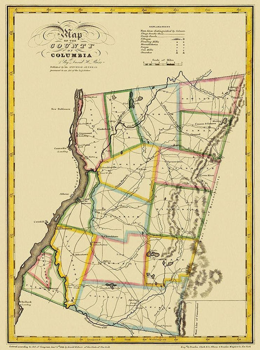 Columbia New York - Burr 1829 White Modern Wood Framed Art Print with Double Matting by Burr