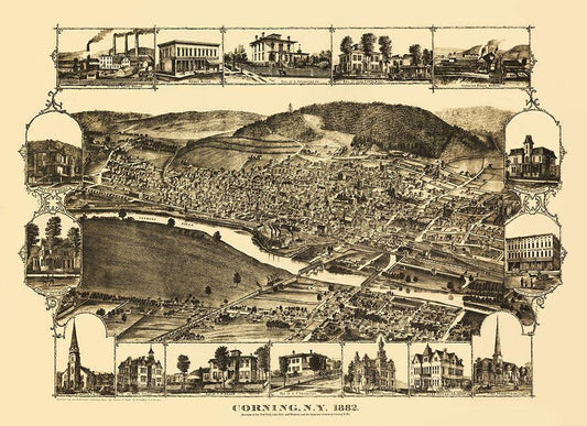 Corning New York - Corbin 1882 White Modern Wood Framed Art Print with Double Matting by Corbin