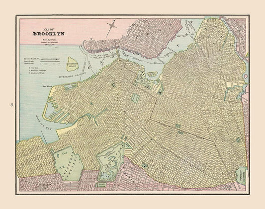 Brooklyn New York - Cram 1892 White Modern Wood Framed Art Print with Double Matting by Cram