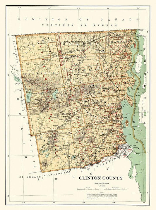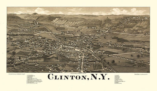 Clinton New York Landowner - Bien 1895 White Modern Wood Framed Art Print with Double Matting by Bien
