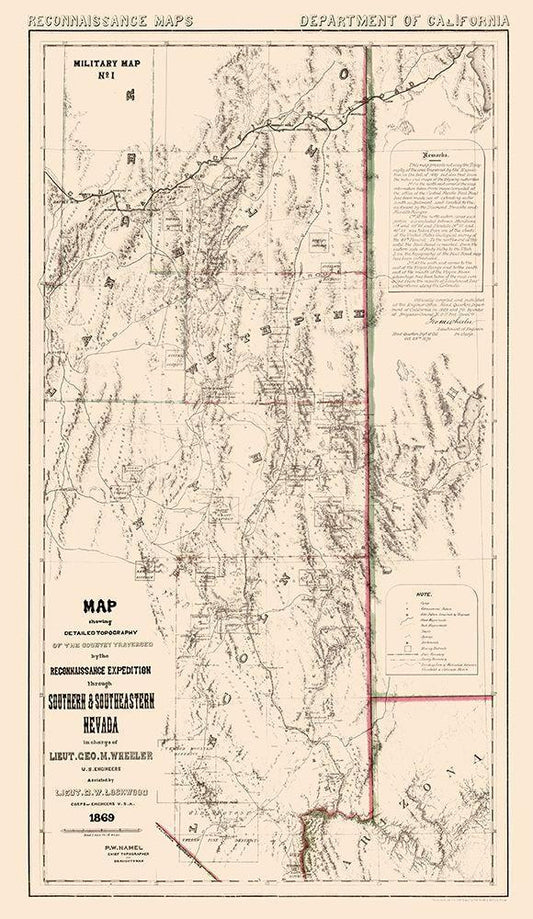 Nevada - Wheeler 1869 White Modern Wood Framed Art Print with Double Matting by Wheeler