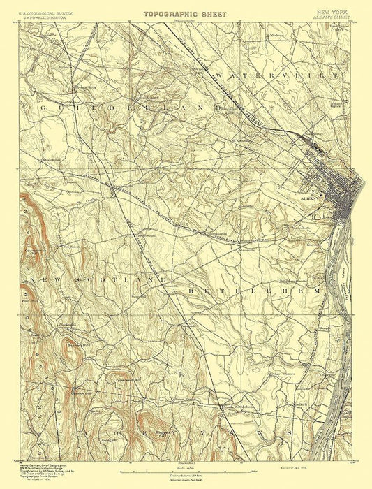 Albany New York Sheet - USGS 1893 White Modern Wood Framed Art Print with Double Matting by USGS