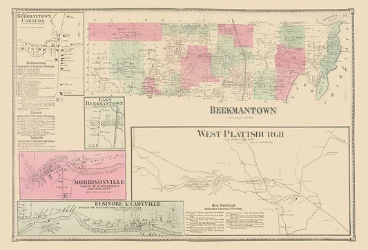 Beekmantown New York Landowner - Beers 1869 White Modern Wood Framed Art Print with Double Matting by Beers