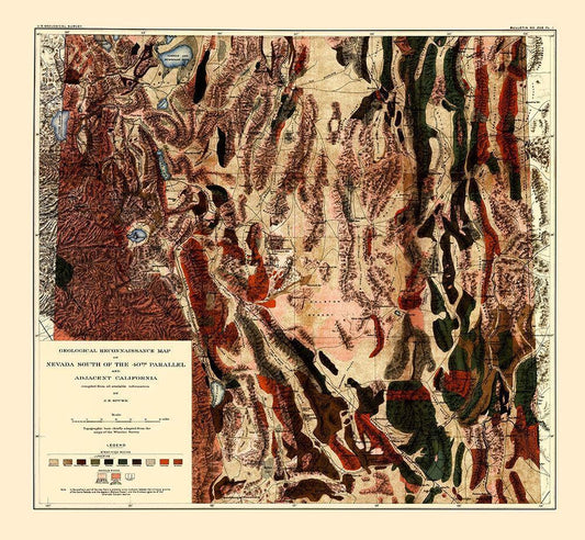 Nevada S 40th Parallel Nevada - Spurr 1903 White Modern Wood Framed Art Print with Double Matting by Spurr