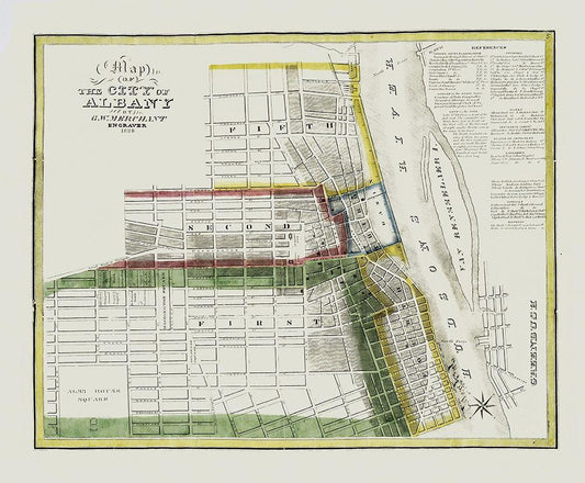 Albany New York - Merchant 1828 White Modern Wood Framed Art Print with Double Matting by Merchant