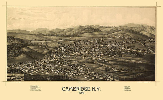 Cambridge New York - Burleigh 1886 White Modern Wood Framed Art Print with Double Matting by Burleigh