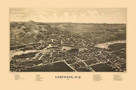 Carthage New York - Burleigh 1888 White Modern Wood Framed Art Print with Double Matting by Burleigh
