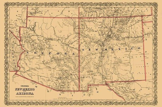New Mexico, Arizona - Colton 1873 White Modern Wood Framed Art Print with Double Matting by Colton
