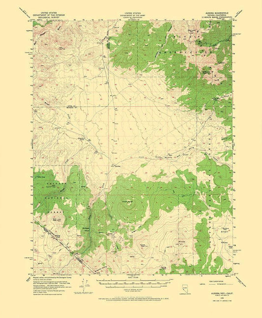 Aurora Nevada California Quad - USGS 1956 White Modern Wood Framed Art Print with Double Matting by USGS