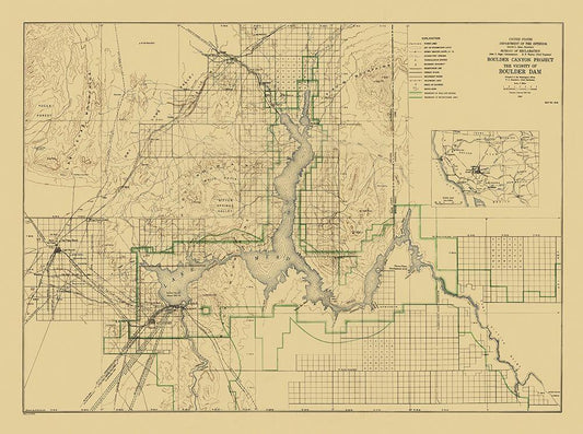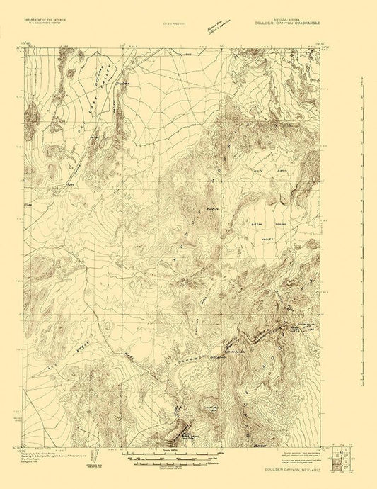Boulder Canyon Nevada Arizona Quad - USGS 1926 White Modern Wood Framed Art Print with Double Matting by USGS