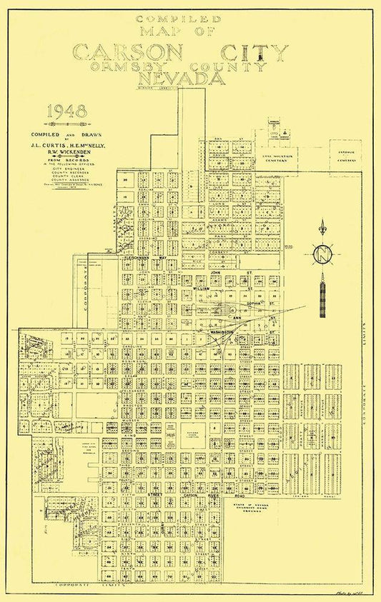 Carson City Nevada Plat - Curtis 1948 White Modern Wood Framed Art Print with Double Matting by Curtis