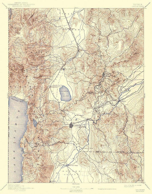 Carson Nevada Sheet - USGS 1893 White Modern Wood Framed Art Print with Double Matting by USGS
