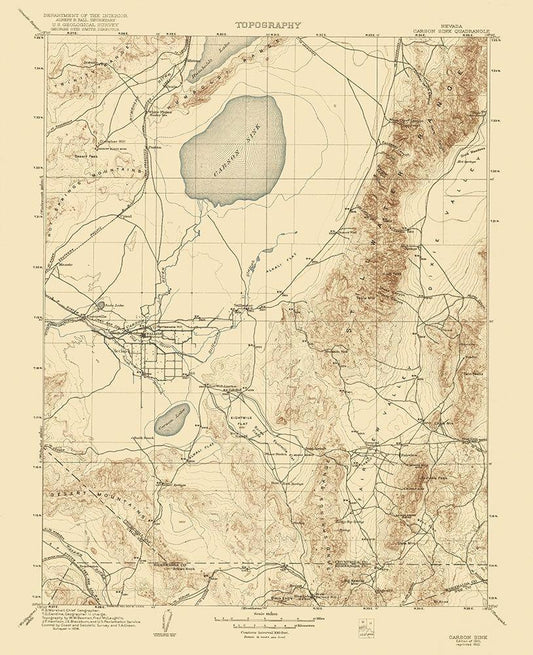 Carson Sink Nevada Quad - USGS 1910 White Modern Wood Framed Art Print with Double Matting by USGS