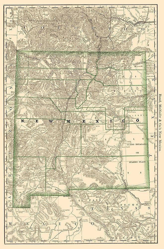 New Mexico - Rand McNally 1879 White Modern Wood Framed Art Print with Double Matting by Rand McNally