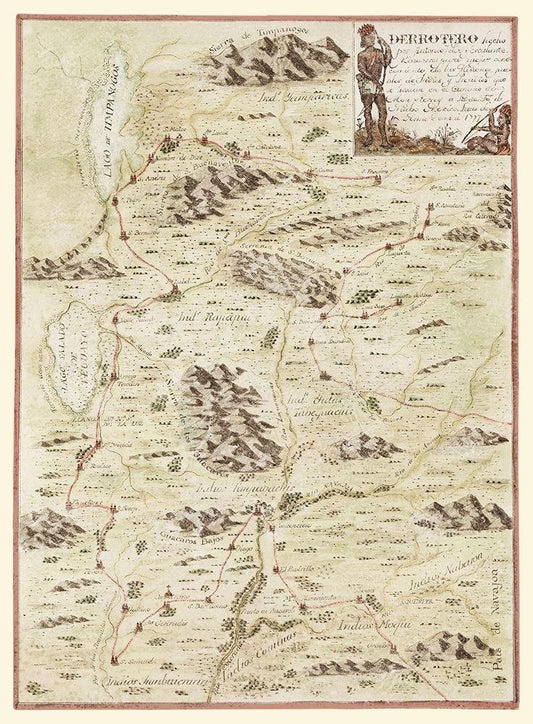 New Mexico Route with Indian Villages, Missions White Modern Wood Framed Art Print with Double Matting by Escalante