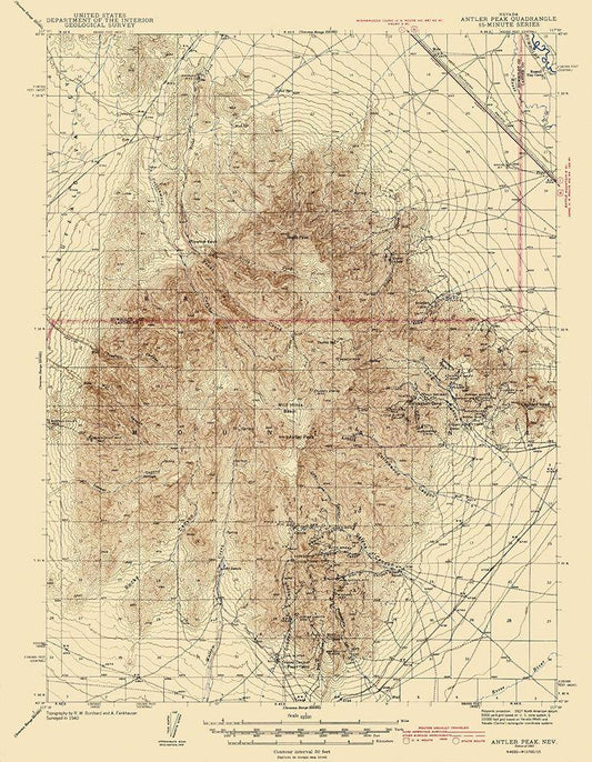 Antler Nevada Quad - USGS 1943 White Modern Wood Framed Art Print with Double Matting by USGS