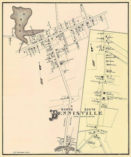 Dennisville, North, South New Jersey Landowner White Modern Wood Framed Art Print with Double Matting by Woolman