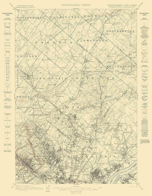 Germantown Pennsylvania New Jersey Quad White Modern Wood Framed Art Print with Double Matting by USGS
