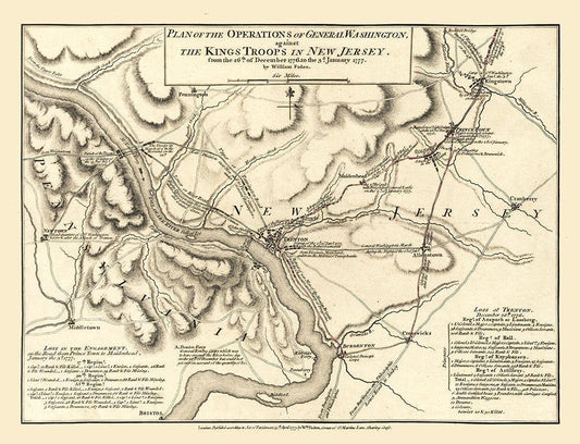 New Jersey General Washington Operations - Faden 1777 White Modern Wood Framed Art Print with Double Matting by Faden