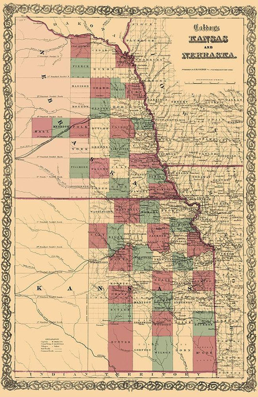 Nebraska, Kansas - Colton 1875 White Modern Wood Framed Art Print with Double Matting by Colton
