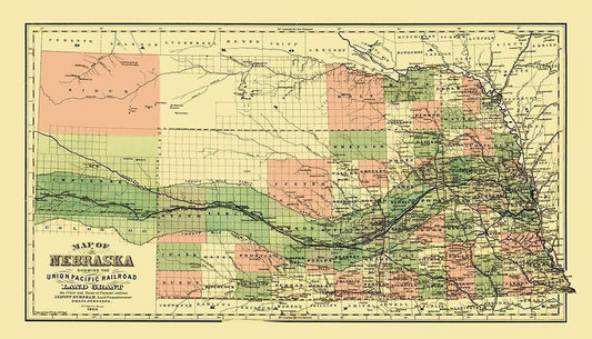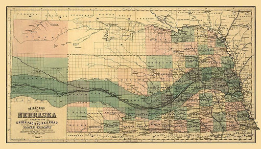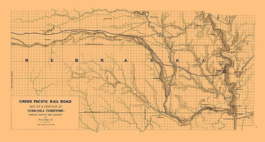 Union Pacific Railroad, Nebraska Territory 1865 White Modern Wood Framed Art Print with Double Matting by Dey