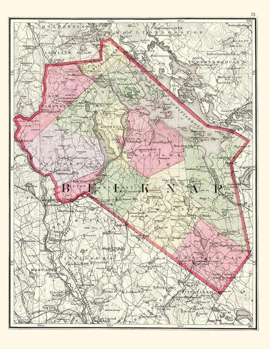 Belknap New Hampshire - Walling 1877 White Modern Wood Framed Art Print with Double Matting by Walling