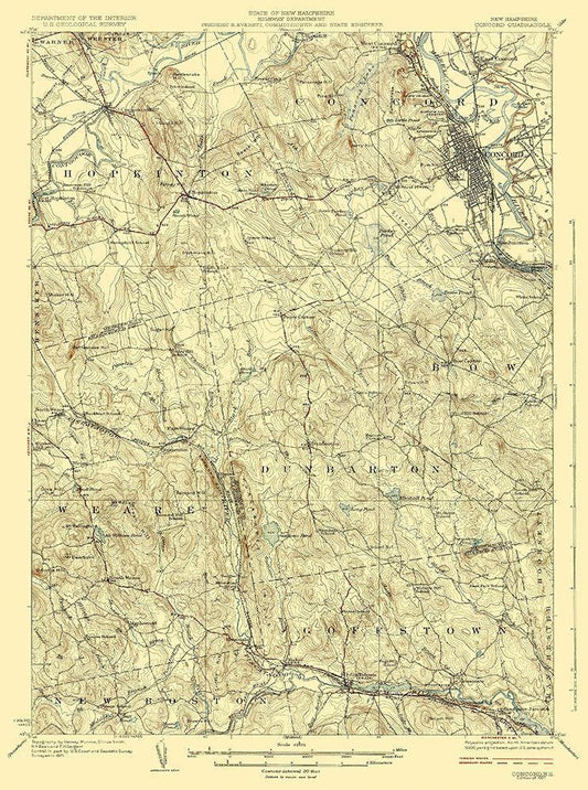 Concord New Hampshire Quad - USGS 1927 White Modern Wood Framed Art Print with Double Matting by USGS