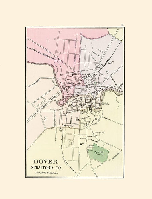 Dover New Hampshire - Hitchcock 1877 White Modern Wood Framed Art Print with Double Matting by Hitchcock
