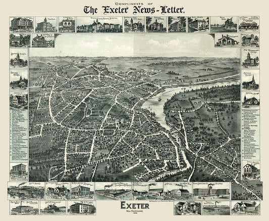 Exeter New Hampshire - Moore 1896 White Modern Wood Framed Art Print with Double Matting by Moore