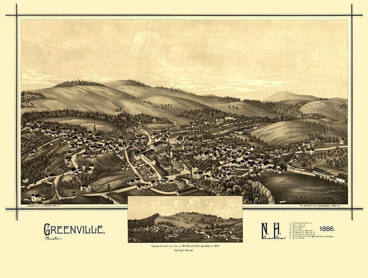 Greenville New Hampshire - Burleigh 1886 White Modern Wood Framed Art Print with Double Matting by Burleigh