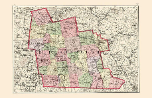 Hillsborough New Hampshire - Walling 1877 White Modern Wood Framed Art Print with Double Matting by Walling